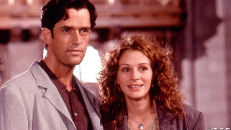 I saw this movie when it came out in the theater and saw it on video a couple times, but it had been a really long time since I'd seen it, so I had forgotten a lot of things (although I did remember who ended up getting married at the titular wedding). I also forgot how everyone sucks except for Rupert Everett's character. His name is George and he is Jule's (Julia Roberts) editor and (at the time) closest friend. He is also gay. They seem to remind us of this every half hour in case we forgot. Jules has an editor because she is working on a book. She is a twenty-seven-year-old food critic who apparently sends fear into every chef. The very first scene we see her, she's at a restaurant with everyone in the kitchen looking on in anticipation as she tastes the dish and gives her critique right there to the waiter and tells him, "I'm writing it up as inventive and confident." First of all, pretty sure you have to be much older than 27 to be considered an established food critic. Second of all, why is she giving her critique to the waiter? Third of all, why is she telling anyone her review at all? I assume she writes it for the paper and that's when everybody reads it. There is absolutely no reason for her to be a food critic; it doesn't even come up again in the film. (You'd think they'd want her input for the food at the wedding!) They just do it to give her a glamorous job that won't interfere with the plot of the movie. Speaking of which, we will get into when she gets a phone call from her best friend, Michael (Dermot Mulroney) who writes for Sport magazine. They've only been best friends for a few years and I'm scratching my head as to why they're best friends because she and George seem to have more of a connection than she does with Michael. We find out about Michael through exposition when Jules tells George about him. She met him when they were sophomores at Brown and were hot and heavy for a month when they dated, then she broke up with him because she got "restless". Apparently Michael told her, "The thing that makes me want to cry is I'm losing the best friend I ever had" and she felt the same. Uh, what? They've only known each other for a month and they're calling each other their best friend? Give me a break, we know it wasn't her "friendship" he was going to miss if you know what I mean and I think you do! The closest thing we get to them being best friends is when Jules tells George that they've been there for each other though losing jobs, losing parents, losing loved ones (they're only 28 years old...they're not old at all...how many peoples are dropping dead in their lives? Good lord!), traveling together (that's a little weird...). They made a pact six years ago that if they're 28 and haven't married yet, they will marry each other. Well, guess who's turning 28 in 3 weeks? This is the stupidest thing ever. Why 28? Why not just round it up to 30? And even that is still pretty young. Obviously if they wanted to get married, they would have gotten married instead of leaving it up to some stupid pact. Michael has called her and left her a message to call back so she thinks it's about that and is extremely nervous to call him back. I should mention that there are many scenes when Jules is calling people in public with her big-ass '90s cell phone and I am so, so, so embarrassed for her.